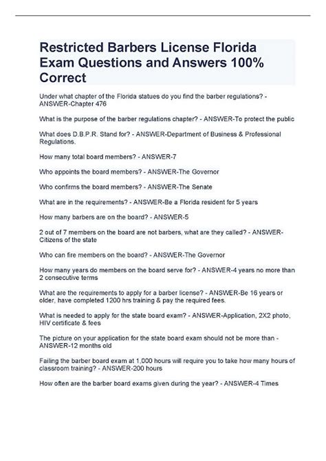 Free Download Practice Test For Restricted Barbers In Florida How To Download Free PDF PDF